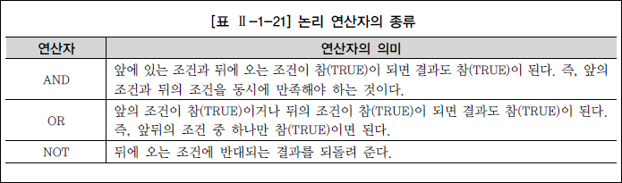 연산자의 종류 - K-리그 일부 선수들의 이름과 포지션, 백넘버를 알고싶음 - 조건은 소속팀이 삼성블루윙즈이거나 전남드래곤즈에 소속된 선수들 중에서 포지션이 미드필드이면서, 키는 170cm 이상, 180cm 이하여야 함 - 조건을 주체적으로 설정하기 위해 다향한 연산자의 조합이 필요