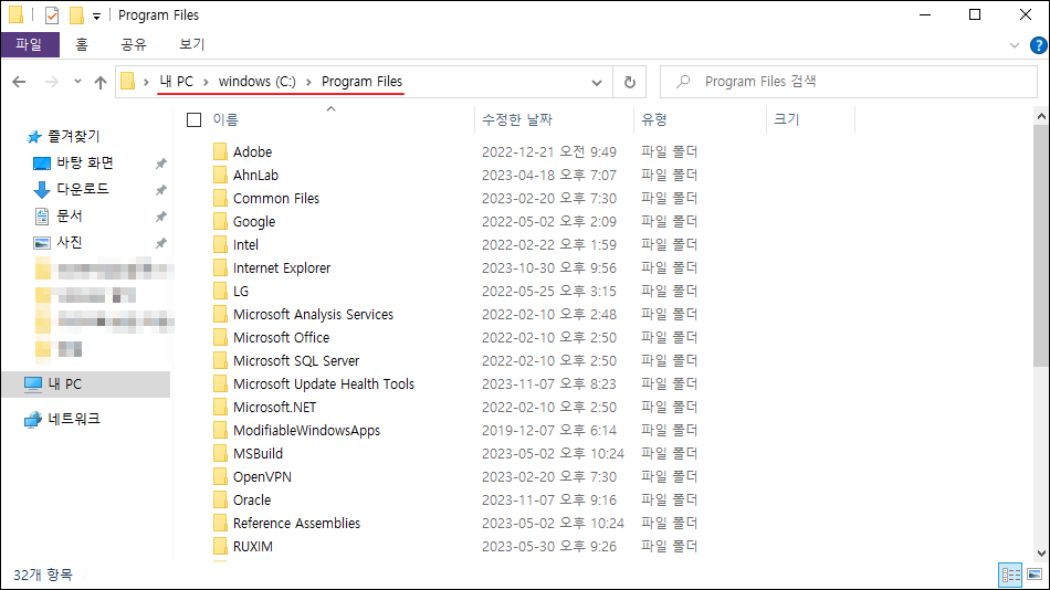 2-1. C드라이브 - Program Files 경로에 'JAVA' 폴더가 있는지 확인. 있다면 JAVA 폴더 내 JDK 폴더가 있는지 확인(ex: JRE만 있다면 JDK가 없는 것)